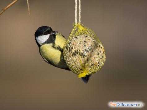 Чтобы изделие случайно не упало под весом садящихся на него птиц, можно положить лакомство внутрь сетки. Последнюю, в свою очередь, следует закрепить на улице при помощи прочной веревки (фото). Очевидно, что такие съедобные кормушки адаптированы для размещения на балконах и за окнами. В этом случае они будут всегда находиться под крышей и еда для пернатых не промокнет. Плюс подобных изделий состоит в том, что они способны стать «столовой» для птиц любого вида. Ведь зачастую крупные птахи просто не могут проникнуть внутрь миниатюрной кормушки, в связи с чем вынуждены довольствоваться крохами с земли.