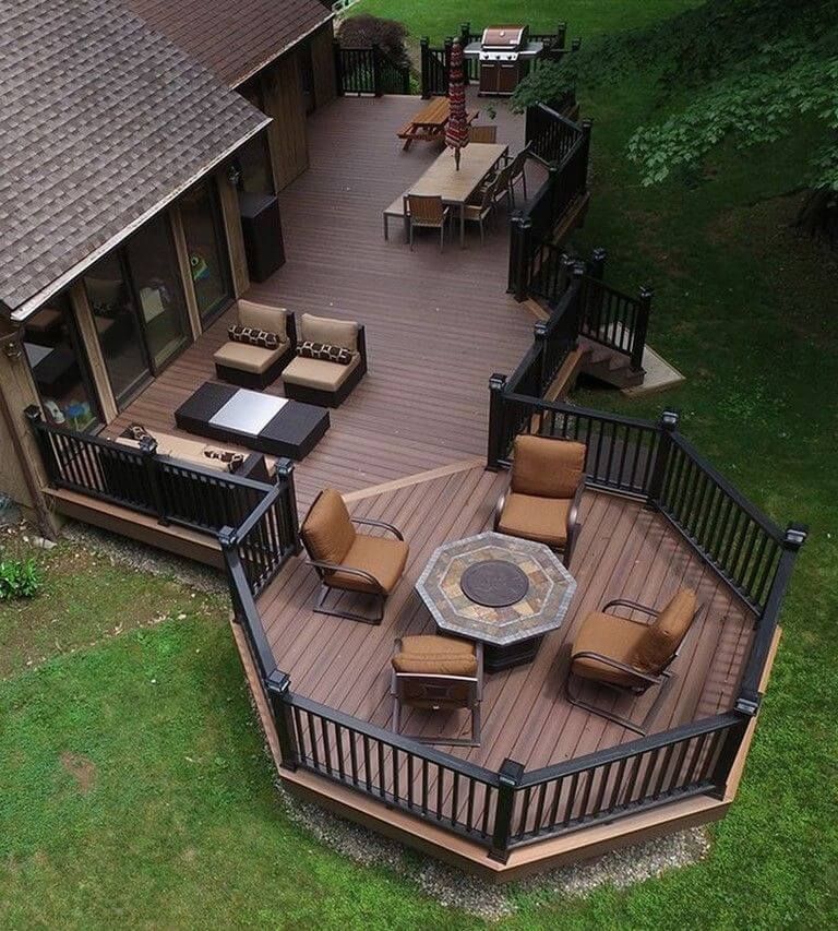 В стороне, где больше солнца, стоит обустроить сад. В более темных местах можно расположить зону барбекю или декоративные кустарники. Перед входом в дом можно создать уютный дворик, который скроет происходящее внутри здания от любопытных глаз.