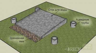 - Уклон нужно расположить таким образом, чтобы сток направлялся в сторону емкости с дренажем или траншеи.