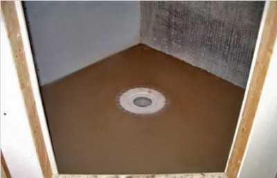 Под второй тип пола следует уложить водоупорный слой. Если вы отдадите предпочтение поддону, то слив воды нужно осуществлять через шланг.