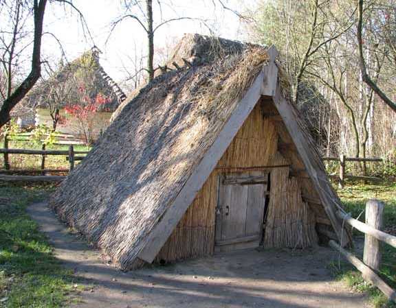 Обшивку стен можно сделать из досок, плетня и она должна быть разборной, чтобы летом была возможность её просушки. Потолок делают из жердей покрытых глиносоломенной смазкой, после чего засыпают землёй на 30-40 см.