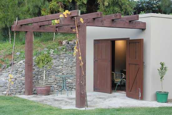 Так как конструкция будет находиться на участке, она должна гармонично вписываться в ландшафтный дизайн. Поэтому его фасад можно красиво оформить. При этом учитывают, на каком расстоянии находится постройка от дома, видно ли ее на участке или же она скрыта от глаз перегородкой.