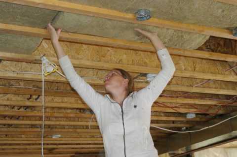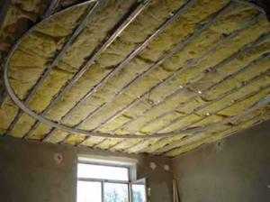- Если вы устанавливается натяжные потолки, то следует монтировать каркас, который подразумевает установку утеплителя (прочитайте также: «Чем утепляют потолок деревянного дома»).