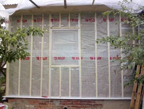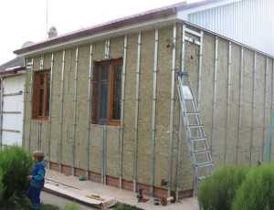 Во время установки обрешетки может быть выполнено наружное утепление стены. В качестве утеплителя выбирается материал с паропроницаемостью выше, чем у материала стен. Этот момент очень важен, иначе на границе двух материалов будет накапливаться вода (конденсат), что рано или поздно вызовет разрушение стены.