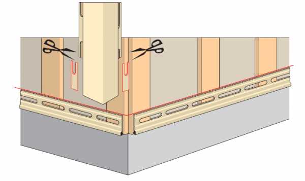 Подрезка краев панелей сайдинга для вставки в профиль внутреннего угла или J-профиль
