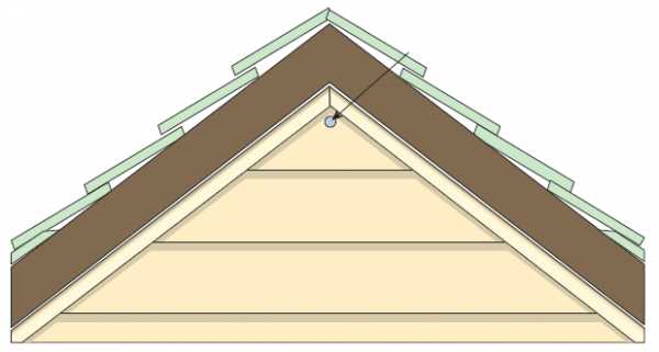 Профиль приложите к углу обрешетки так, чтобы до крыши или софита отступ равнялся 3 мм и закрепите его, установив саморез вверху крепежного отверстия на обоих сторонах.