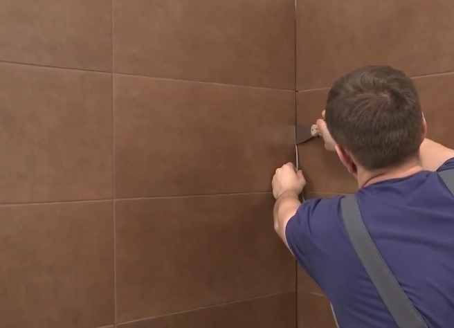 Окончательным этапом укладки плитки является обработка швов. Для этого специальным резиновым шпателем наносят затирку.
