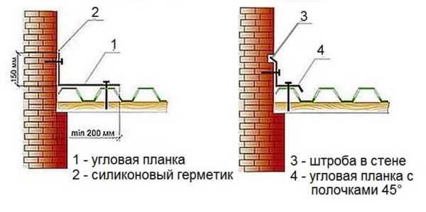 | меньше 12° | 200 мм + герметик |