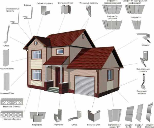 Основная площадь обшивки формируется рядовыми сайдинг-панелями. Но для их крепления требуются комплектующие, называемые также доборными элементами.