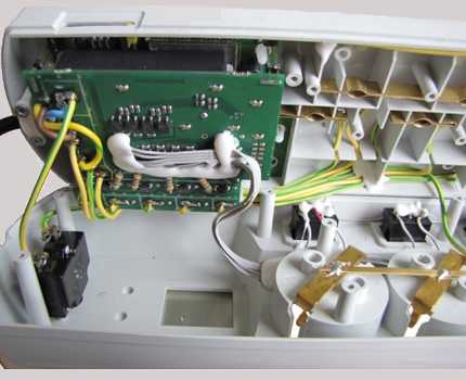 Работают благодаря наличию электронной схемы. Она состоит из датчика, выходного реле, накладных/сенсорных кнопок управления, иногда поворотного колесика, микропроцессора, обрабатывающего входные команды и выдающего сигналы, термометра (резистивного датчика), измеряющего температуру.