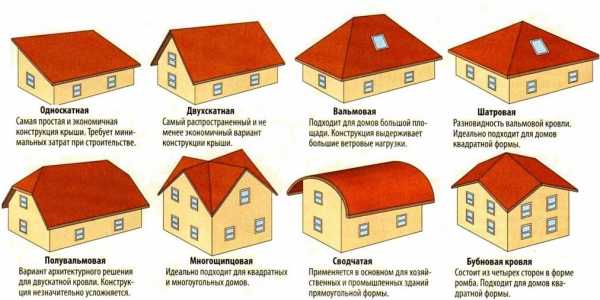 Наклонные крышные конструкции разнятся по числу скатов и конфигурации. С учетом этого выделяют системы: