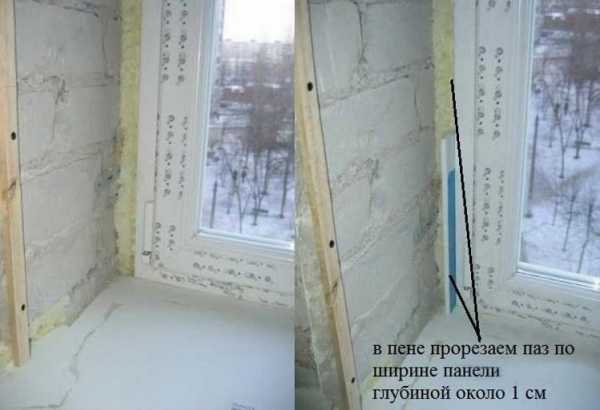 Отделка оконных откосов панелямиПри выборе такого метода следует учитывать следующие особенности: