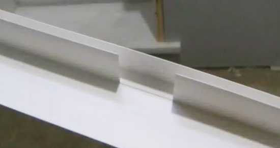 - Панель примеряется по заданному месту. Ее аккуратно вставляют в паз и выравнивают. Если имеются небольшие излишки, то их легко подрезать.