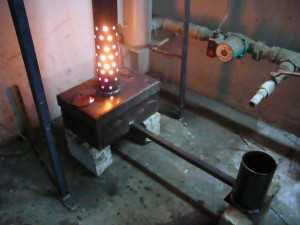Изготавливая такие печи для гаража своими руками, необходимо будет создать два отсека, один из которых предназначен для сгорания отработки, тогда как второй – для горения газов, предварительно смешанных с кислородом. Для создания подобного устройства придется сформировать Н-образный аппарат, в составе которого будет топливный бак, дымоотвод, камера дожигания, а также температурная камера. При изготовлении следует использовать все ту же листовую сталь. Тогда как снизу располагающийся бак допустимо сформировать с применением готового стального ящика. Для того чтобы обеспечить пожарную безопасность и правильное функционирование печи, к нижнему ящику приваривают ножки.