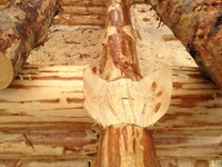 Так же делается лапа на противоположном конце бревна. Затем по этим же инструкциям делается второе бревно, которое в срубе будет параллельно первому.