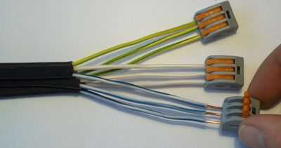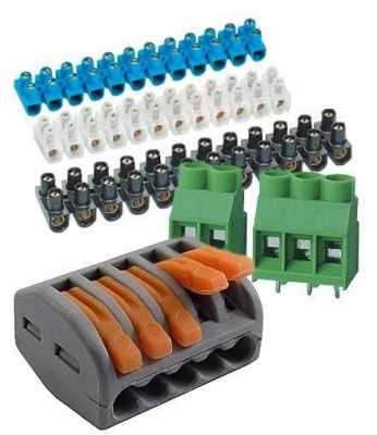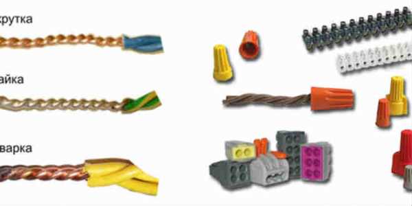 Π‘ΡΡΠ΅ΡΡΠ²ΡΠ΅Ρ Π½Π΅ΡΠΊΠΎΠ»ΡΠΊΠΎ ΡΠ°Π·Π»ΠΈΡΠ½ΡΡ ΡΠΏΠΎΡΠΎΠ±ΠΎΠ² ΡΠΎΠ΅Π΄ΠΈΠ½Π΅Π½ΠΈΡ ΠΏΡΠΎΠ²ΠΎΠ΄ΠΎΠ²: ΠΎΠ±ΡΡΠ½Π°Ρ ΡΠΊΡΡΡΠΊΠ° ΡΠΎ ΡΠ»ΠΎΠ΅ΠΌ ΠΈΠ·ΠΎΠ»Π΅Π½ΡΡ (ΠΈΠ»ΠΈ ΡΠ΅ΡΠΌΠΎΡΡΠ°Π΄ΠΊΠΎΠΉ), ΡΠΊΡΡΡΠΊΠ° ΡΠΎ ΡΠ²Π°ΡΠΊΠΎΠΉ ΠΊΠΎΠ½ΡΠΎΠ², ΡΠΊΡΡΡΠΊΠ° Ρ Π‘ΠΠ (Π½Π°ΠΊΠΎΠ½Π΅ΡΠ½ΠΈΠΊ Ρ ΠΏΡΡΠΆΠΈΠ½ΠΎΠΉ), ΡΠΎΠ΅Π΄ΠΈΠ½Π΅Π½ΠΈΠ΅ ΠΏΡΠΈ ΠΏΠΎΠΌΠΎΡΠΈ Π·Π°ΠΆΠΈΠΌΠΎΠ² Wago.