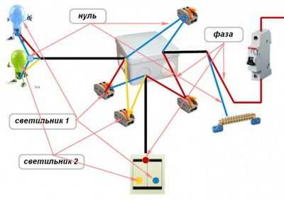 ΠΠΎΠΌΠΌΡΡΠ°ΡΠΈΡΒ ΡΡΠΎΒ ΠΏΡΠΎΡΠ΅ΡΡ ΠΏΠ΅ΡΠ΅ΠΊΠ»ΡΡΠ΅Π½ΠΈΡ Π² ΡΠ»Π΅ΠΊΡΡΠΈΡΠ΅ΡΠΊΠΈΡ ΡΠ΅ΠΏΡΡ ΠΏΡΠΈ Π·Π°ΠΌΡΠΊΠ°Π½ΠΈΠΈ ΠΈΠ»ΠΈ ΡΠ°Π·ΠΌΡΠΊΠ°Π½ΠΈΠΈ ΡΠ°Π·Π»ΠΈΡΠ½ΡΡ ΡΡΠ°ΡΡΠΊΠΎΠ² ΡΠ΅ΠΏΠΈ. ΠΠ°ΠΆΠ΄ΡΠΉ ΡΠ»Π΅ΠΌΠ΅Π½Ρ ΡΠ»Π΅ΠΊΡΡΠΈΡΠ΅ΡΠΊΠΎΠΉ ΡΠ΅ΠΏΠΈ (Π ΠΎΠ·Π΅ΡΠΊΠ°, Π²ΡΠΊΠ»ΡΡΠ°ΡΠ΅Π»Ρ, ΡΠ²Π΅ΡΠΈΠ»ΡΠ½ΠΈΠΊ) ΡΠ²ΠΎΠ΄ΠΈΡΡΡ Π² ΡΠ°ΡΠΏΡΠ΅Π΄Π΅Π»ΠΈΡΠ΅Π»ΡΠ½ΡΡ ΠΊΠΎΡΠΎΠ±ΠΊΡ. ΠΠΎΡΠΎΠΌ Π² ΡΡΠΎΠΉ ΡΠ°ΡΠΏΡΠ΅Π΄Π΅Π»ΠΈΡΠ΅Π»ΡΠ½ΠΎΠΉΒ ΠΊΠΎΡΠΎΠ±ΠΊΠ΅ Π½Π΅ΠΎΠ±Ρ ΠΎΠ΄ΠΈΠΌΠΎ ΡΠΎΠ΅Π΄ΠΈΠ½ΠΈΡΡ ΠΏΡΠΎΠ²ΠΎΠ΄Π° Π² Π½ΡΠΆΠ½ΠΎΠΌ ΡΠΎΠΎΡΠ½ΠΎΡΠ΅Π½ΠΈΠΈ, ΡΡΠΎΠ±Ρ Π²ΡΠΊΠ»ΡΡΠ°ΡΠ΅Π»Ρ Π±ΡΠ» Π²ΡΠΊΠ»ΡΡΠ°ΡΠ΅Π»Π΅ΠΌ, Π° Π½Π΅ ΡΠΎΠ·Π΅ΡΠΊΠΎΠΉ ΠΈ Π½Π°ΠΎΠ±ΠΎΡΠΎΡ. ΠΠ»Ρ ΡΡΠΎΠ³ΠΎ Π½ΡΠΆΠ½ΠΎ ΡΡΠΊΠΎΠ²ΠΎΠ΄ΡΡΠ²ΠΎΠ²Π°ΡΡΡΡ ΠΠ£Π.