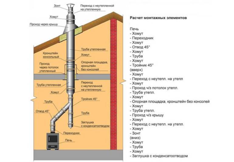 Дымоход в бане своими руками, установка через потолок и стену