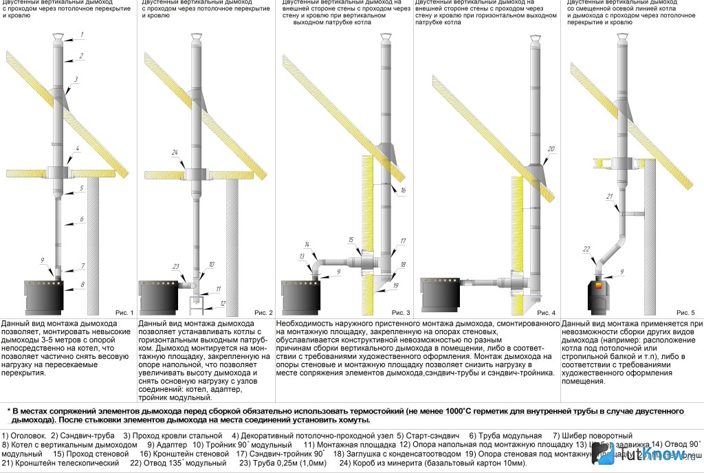Как правильно установить дымоход из сэндвич труб через стену и потолок: правила обустройства, проход, варианты проходных узлов, изоляция