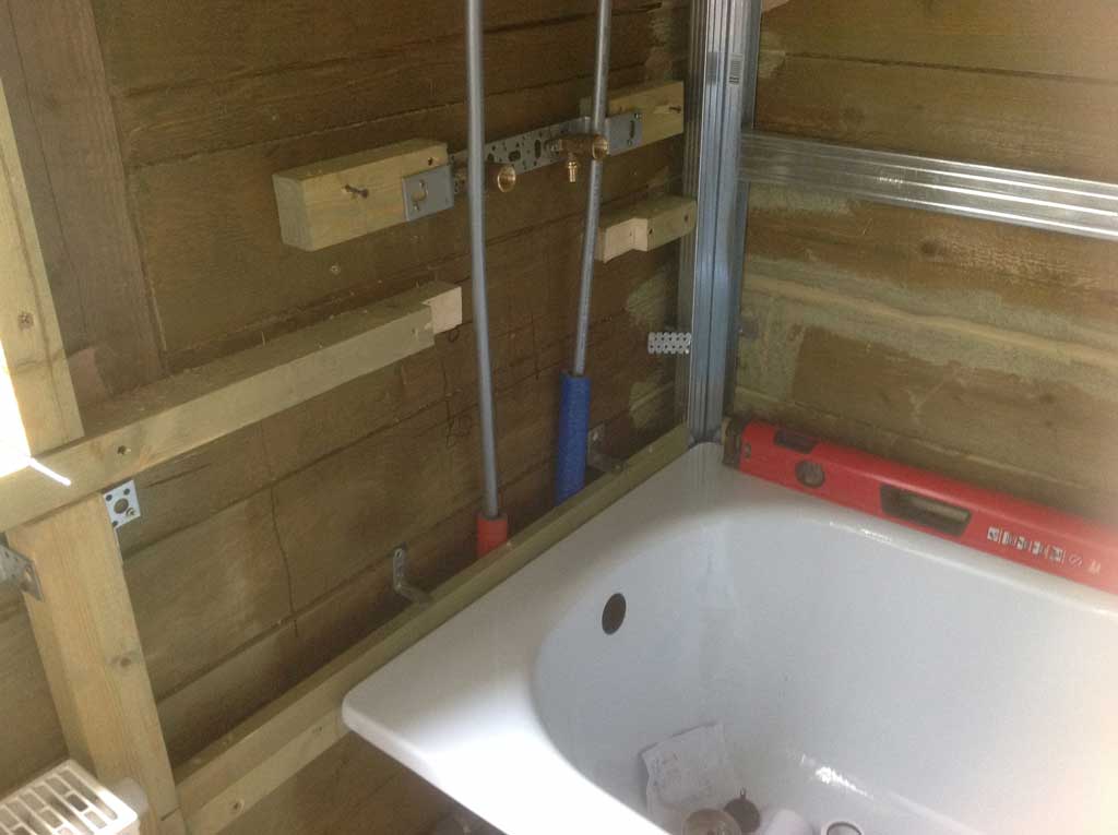 Панели ПВХ, приобретенные для ванной комнаты, могут крепиться на специально сооруженный каркас.