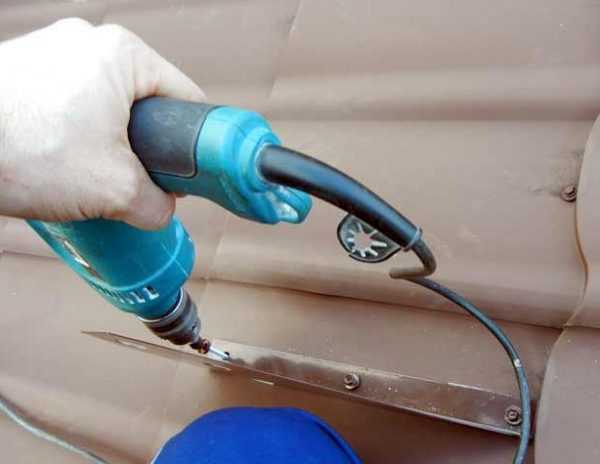 К следующему этапу приступают после закрепления профлистов, для исключения ошибки материал размечается заранее. При работе с марками с высокими несущими способностями (Н60, НС 44) отверстия просверливаются до начала настила кровли. В остальных случаях опорные кронштейны прикручиваются металлическими саморезами с помощью дрели или шуруповерта. Для усиления герметичности и долговечности используются метизы с уплотнителем, при их отсутствии кольца нужно купить отдельно. Шаг совпадает с основной обрешеткой, исключение делается лишь для крайних кронштейнов. На каждый из них уходит не менее 3 метизов.