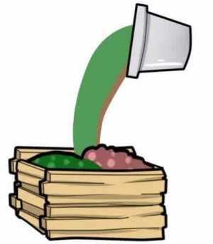 Влажность массы должна быть такой же, как у отжатой губки. В компостной куче очень важно поддерживать достаточный уровень влажности (в пределах 45-70%) и температуры (28-35°С). Сухой материал не будет разлагаться, переувлажненный будет слеживаться, и компоненты будут плохо взаимодействовать друг с другом. В сухую и жаркую погоду смесь необходимо поливать, при избыточном количестве осадков содержимое компостной кучи нужно постоянно перелопачивать. Нельзя допускать чрезмерного «разогревания» компостной кучи – при температуре свыше 60°С все микроорганизмы погибают.