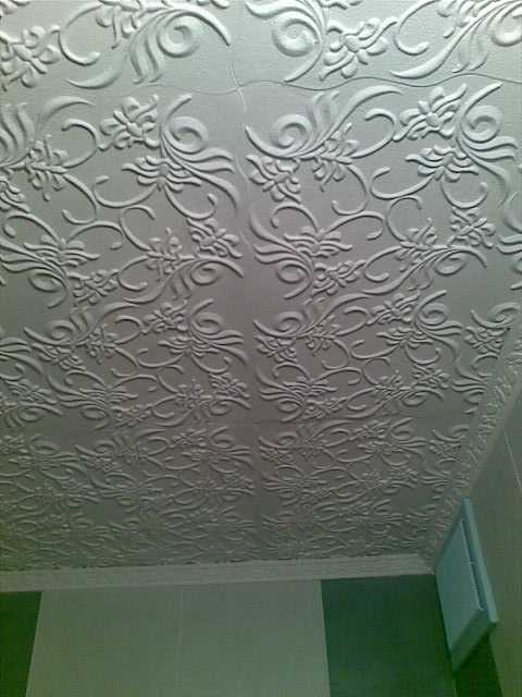 Для потолка обычно используется специальная лёгкая плитка из пенополистирола, материала по фактуре схожего с пенопластом. Классическая керамическая плитка очень редко применяется во время отделки потолка, так как эта поверхность помещения практически не испытывает никаких нагрузок и обладает невысокими требованиями к прочности и износостойкости материала.
