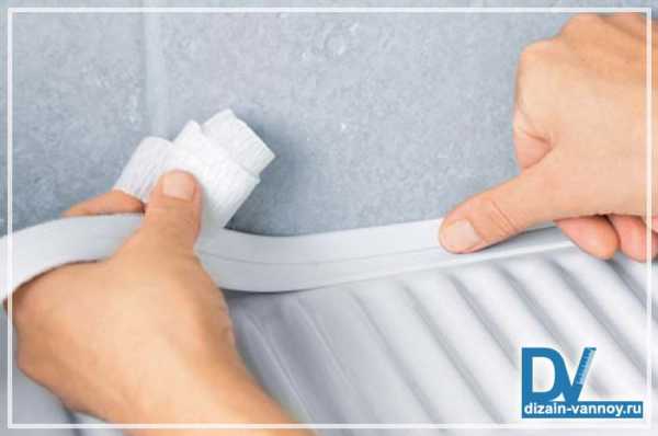 Для обезжиривания можно применять бензин или спирт. Если вы вторично наклеиваете бордюрчик, то побеспокойтесь о том, чтоб на поверхности стены и ванной не осталось древнего клея. Поверхность обязана быть полностью чистой и сухой.- Если щели достаточно широкие, лучше провести подготовительную герметизацию. Для этого отлично подходит герметик на основе силикона для ванны из акрила.