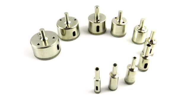 - Сверла. Каким сверлом воспользоваться – решать вам. Существуют специальные сверла для стекла и кафельной плитки из карбида вольфрама, имеющие копьевидную форму, очень острые. Если таких нет, можно воспользоваться обычными победитовыми сверлами, главное, опять же, получше наточить их. Если требуются разнообразные отверстия для вытяжек, розеток, то понадобятся также алмазные коронки различных диаметров.