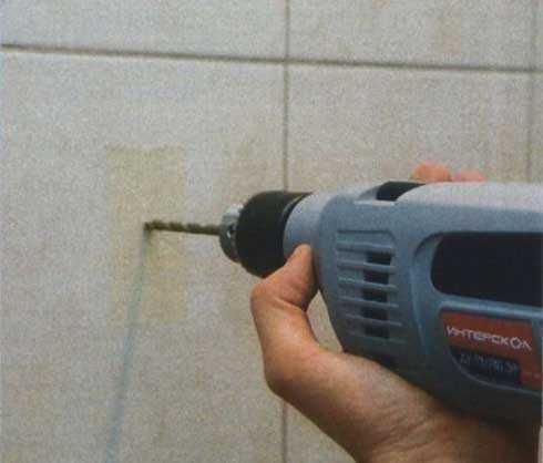 Приступив непосредственно к сверлению, старайтесь действовать очень осторожно. Рекомендуется периодически охлаждать сверло водой. Когда копьевидное сверло пройдет сквозь кафель, замените его на другое – то, что приспособлено для сверления штукатурки.