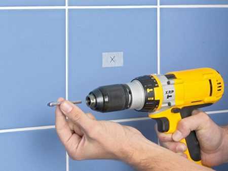 Обратите внимание, что если дюбель, куда будет вкручиваться саморез, надо установить вглубь стены, то сверлить плитку и саму стену надо будет в два этапа: сначала просверливается кафель, затем меняется сверло на обычное по бетону, которым сверлится стена.