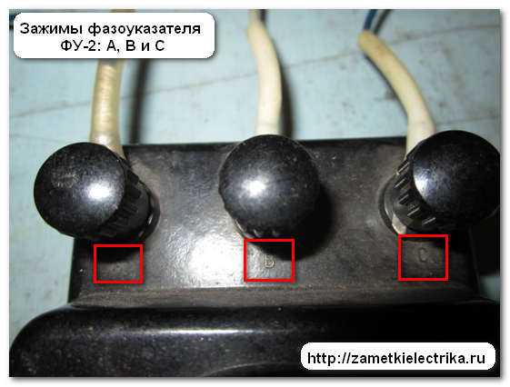 Чтобы проверить порядок чередования фаз можно воспользоваться таким прибором, как фазоуказатель. О том, как пользоваться фазоуказателем, мы уже рассказывали. Конкретно рассмотрим последовательность проверки прибором ФУ 2.