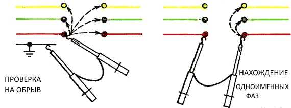 Проверка на обрыв и нахождение одноименных фаз в трехфазной сети