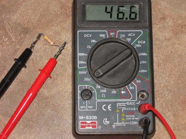 Мультиметр в режиме Омметра Если вы видите почерневшие резисторы, их нужно будет прозвонить мультиметром в режиме омметра. Сначала следует выбрать режим 2 МОм, если на экране будут значения отличающиеся от единицы, или превышения предела измерения, нам следует соответственно уменьшить предел измерения на мультиметре, для установления его более точного значения. Если же на экране единица, то скорее всего такой резистор находится в обрыве, и его следует заменить.