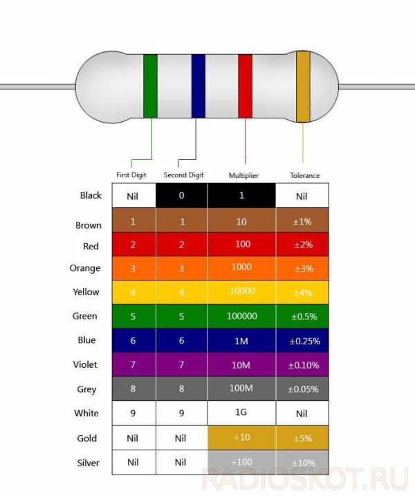 Цветовая маркировка резисторов Если есть возможность прочитать его номинал, по маркировке цветными кольцами, нанесенными на его корпус, хорошо, в противном случае без схемы, не обойтись. Если схема есть в наличии, то нужно посмотреть его обозначение, и установить его номинал и мощность. Если резистор прецизионный, (точный) его номинал можно набрать, путем включения двух обычных резисторов последовательно, большего и меньшего номиналов, первым мы задаем номинал грубо, последним мы подгоняем точность, при этом их общее сопротивление сложится.