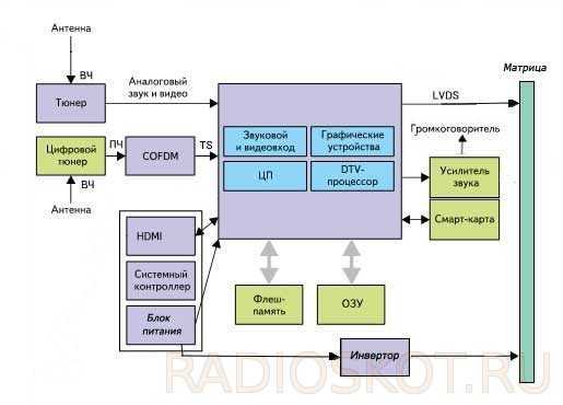 Блок схема ЖК ТВ В таком случае, можно попробовать попросить помощи на специализированных форумах по ремонту техники, после проведения предварительной диагностики самостоятельно, с целью собрать информацию, от которой мастера, помогающие вам смогут оттолкнуться. Какие этапы включает в себя, эта предварительная диагностика? Для начала, вы должны убедиться в том, что питание поступает на плату, если устройство вообще не подает никаких признаков жизни. Может быть это покажется банальным, но не лишним будет прозвонить шнур питания на целостность, в режиме звуковой прозвонки. Читайте тут как пользоваться обычным мультиметром.