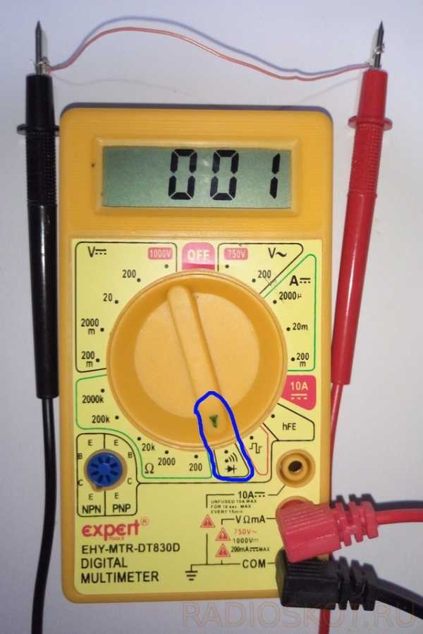 Это прибор, благодаря которому существует возможность измерять показания постоянного и переменного тока, уровни мощности и сопротивления электрических сетей, а также точно устанавливать внутреннюю ёмкость конденсаторов.Перед тем как начнётся проверка каких-либо элементов мультиметром, необходимо проверить исправность самого мультиметра. Для этого регулятор прибора нужно установить в положение прозвона, после чего щупы мультиметра прижимают друг другу и если он начинает пищать, то значит он исправен.