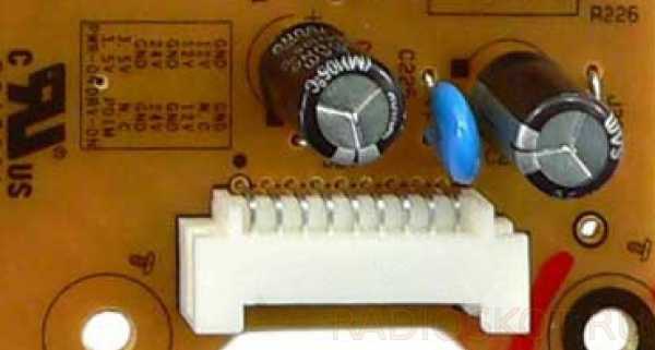 Разъем питания платы управления ТВ Итак, мы замеряли и напряжение какое-либо у нас отсутствует на разъеме — это говорит о том, что схема функционирует не правильно, и нужно искать причину этого. Наиболее частой причиной поломок встречающейся в ЖК ТВ, являются банальные электролитические конденсаторы, с завышенным ESR, эквивалентным последовательным сопротивлением. Про ESR подробнее здесь.