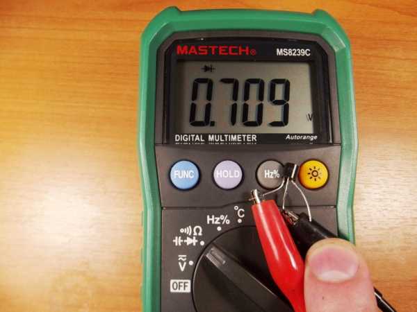 - Меняем полярность и повторяем измерения, мультиметр покажет сопротивление в диапазоне 0,6-1,3 кОм.
