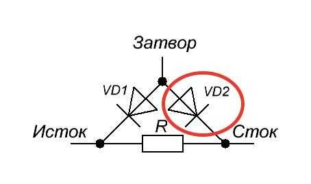 3. Проверка p-n перехода сток-затвор (на рис. VD2).