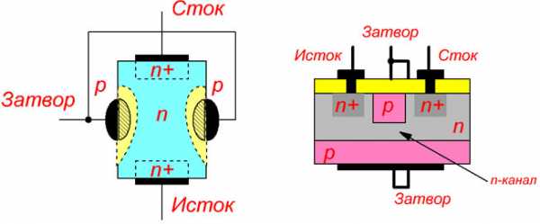 Та часть n-полупроводника, которая находится между p-областями (затворами) называется каналом (в частности каналом n-типа).