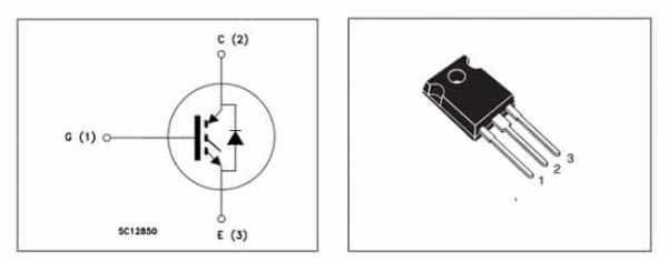 Рис 5. IGBT транзистор SC12850Для тестирования необходимо выполнить те же действия, что и для полевого полупроводникового элемента, с учетом, что сток и исток последнего будут соответствовать коллектору и эмиттеру.