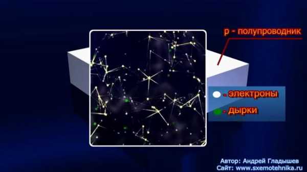Когда электрон покидает атом, в этом месте образуется «дырка» и атом приобретает положительный заряд, то есть становиться положительным ионом. Дырки на модели обозначены, как зеленые шарики.