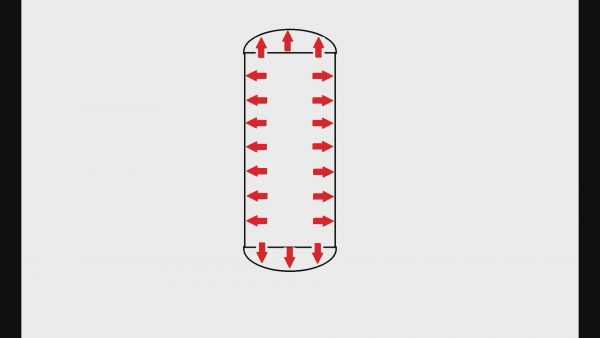 Верхнюю и нижнюю части водонагревателя, как правило, тоже делают полукруглыми. Это делается всё для тех же целей – для того, чтобы распределить давление как можно равномернее.
