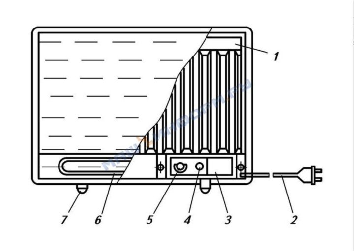 Дополнительно в конструкцию масляного обогревателя входят следующие элементы: