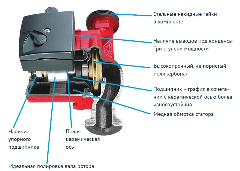 Главными элементами, из которых состоит циркуляционный насос, являются: