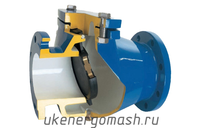 Сбор обратного клапана происходит, соответственно, в обратном порядке: на запорный орган надевается оболочка и закручивается крышкой, сжимается патрубок и вставляется в корпус, затем в корпус устанавливается запорный орган, одевается оболочка на фланцы, и они вставляются, также, в корпус, после вворачиваются шпильки, на шпильки устанавливается клапан и закручиваются гайки и шайбы.