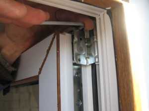 - Бывают случаи, когда винтами дверь не починить, тогда дверь можно немного вытянуть. Необходимо убрать штапики и вставить прокладки из пластика под профиль.