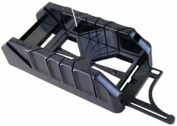 - Для выполнения левосторонней зарезки плинтус размещается «вверх ногами», т.е примыкающая к потолку часть в приспособлении располагается внизу, а примыкающая к стене – в верхней части инструмента. Обрезать по прорези в 45 градусов.