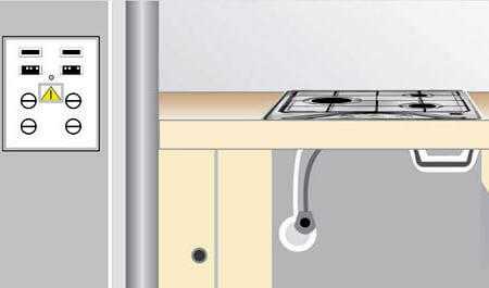 Розетка для включения панели может располагаться в зависимости от особенностей столешницы, а также личных предпочтений. Важно сохранить удобство включения и отключения варочной поверхности. Стандартно ее располагают на высоте 90 см от пола.
